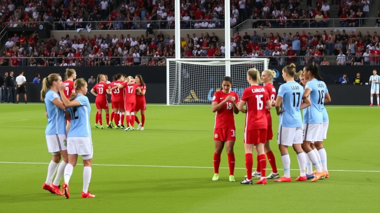 Jordyn Huitema tuvo la mejor oportunidad de Canadá en la primera mitad, pero la portera argentina Solana Pereyra logró desviar su potente disparo, enviándolo al travesaño y fuera de la red. El partido se mantuvo sin goles el resto del tiempo.