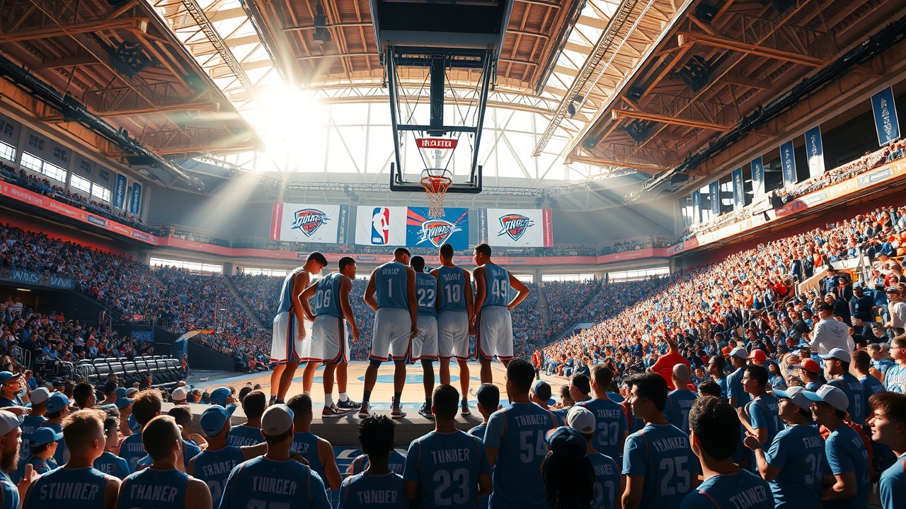 Gilgeous-Alexander dejó el Trofeo Magic Johnson, otorgado al MVP de las finales del oeste, escondido en la parte trasera de su casillero hasta la temporada baja. Sin embargo, el campeonato de los Thunder es mucho más difícil de ocultar. La pancarta cuelga sobre la cancha del Paycom Center, habiendo sido levantada a las vigas antes de la victoria en doble tiempo extra en el partido inaugural de la temporada contra los Houston Rockets. Ese fue uno de los 34 juegos de los Thunder programados para ser transmitidos a nivel nacional, lo que iguala a los New York Knicks, Golden State Warriors y Lakers por la mayor cantidad en la liga, prueba de cuán brillante es de repente el foco en el pequeño mercado de OKC.