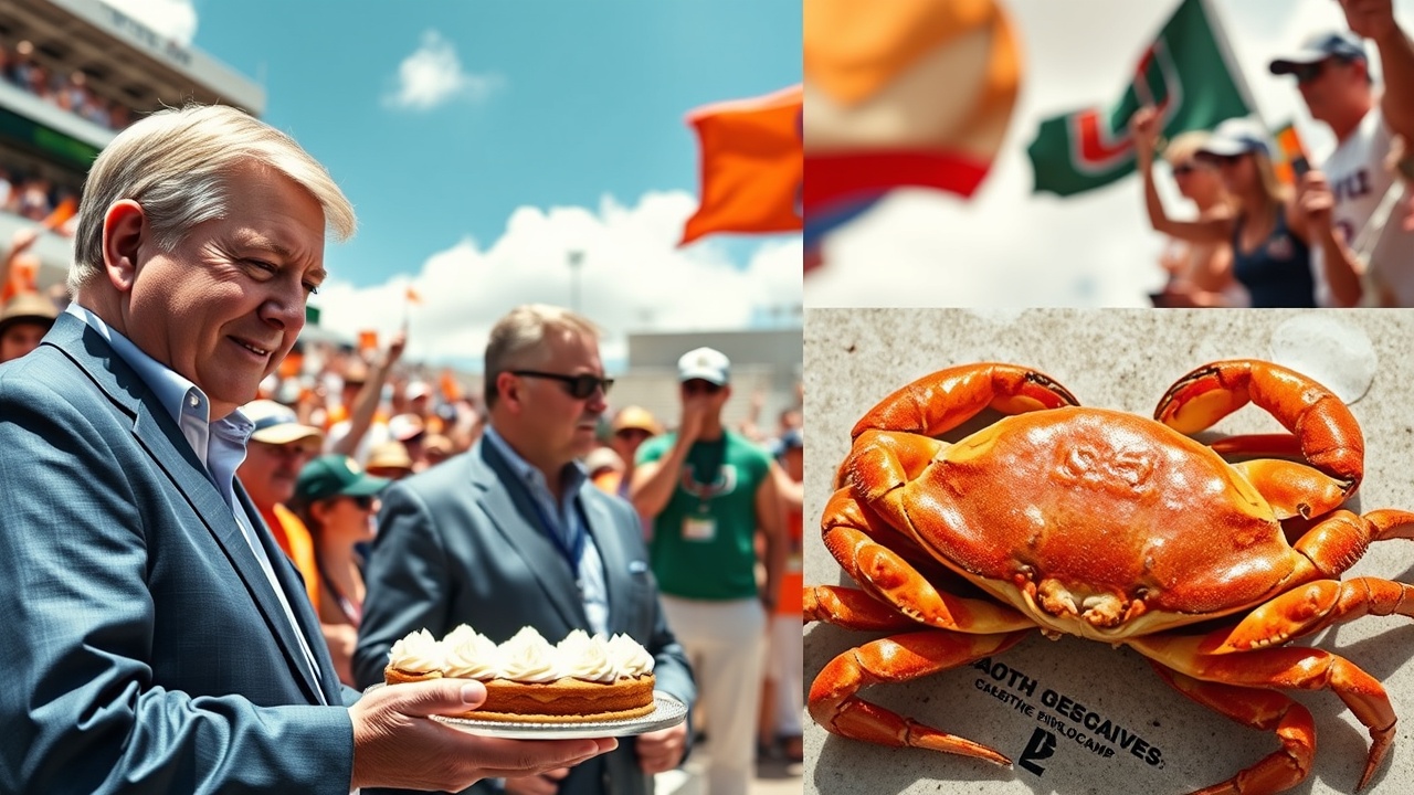 PINELLAS PARK, Fla. (AP) — El gobernador de Florida, Ron DeSantis, anunció el martes que le debe al gobernador de Indiana, Mike Braun, una tarta de lima y cangrejos de piedra tras perder una apuesta. Esto ocurrió después de que Indiana venciera a Miami 27-21, lo que le otorgó al equipo de fútbol americano universitario el campeonato nacional.