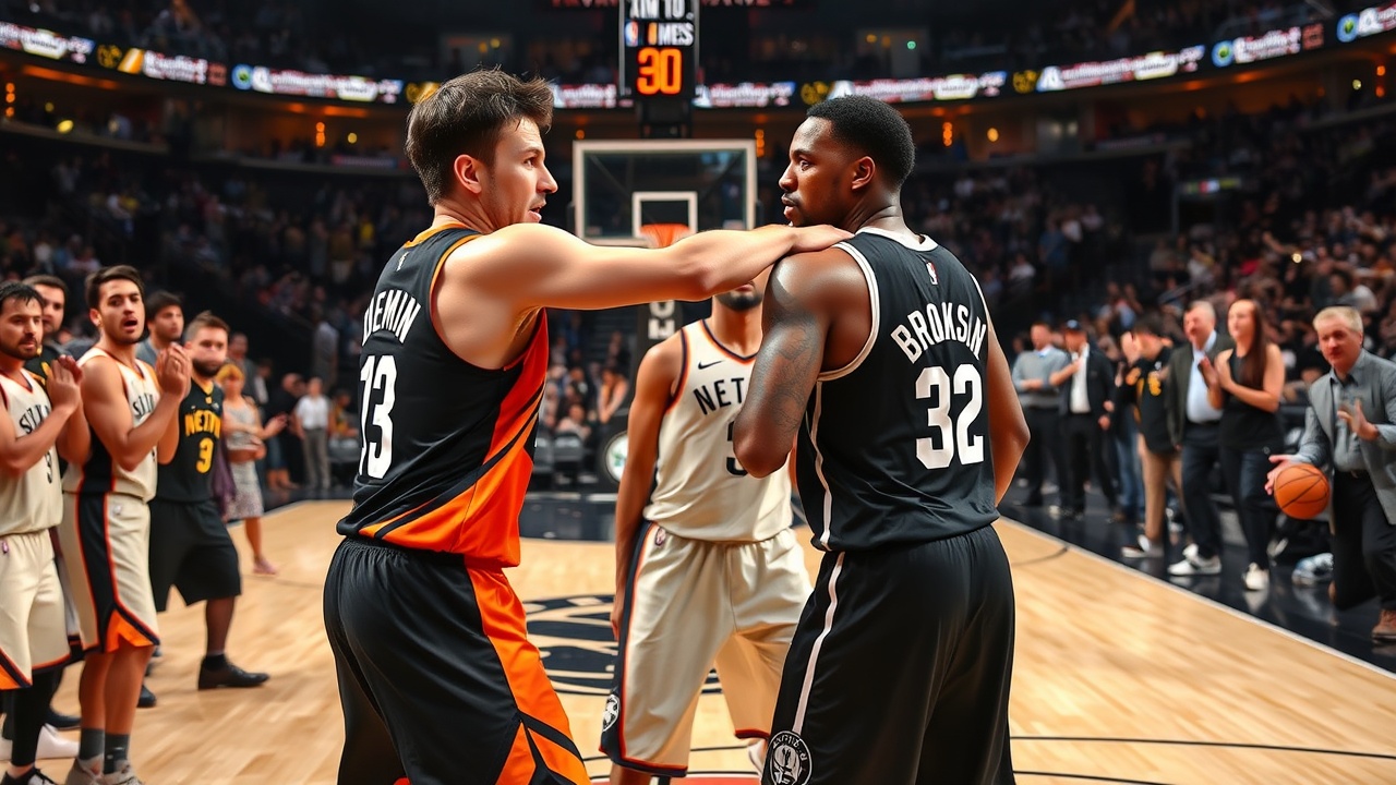 Mientras Brooks se acercaba a Williams, Dёmin se acercó y puso sus manos en la espalda de Brooks, empujándolo ligeramente, aunque Dёmin extendió los brazos al hacerlo. Brooks exageró el contacto y se dejó caer en la cancha, lo que llevó a los jugadores de los Suns a confrontar a Dёmin. El escolta de los Nets, Terrance Mann, y el alero Michael Porter Jr. defendieron al novato, mientras más de una docena de entrenadores asistentes de ambos equipos se apresuraron a separar la pelea.