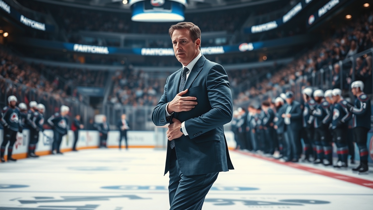 El entrenador de los Colorado Avalanche, Jared Bednar, tuvo que abandonar el banquillo durante la derrota del sábado ante los Vegas Golden Knights, luego de ser golpeado por un puck.