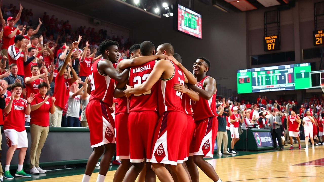 Erich Harding de Marshall fue sancionado tres veces por violaciones en la línea durante la primera mitad mientras intentaba tiros libres. Marshall logró reducir un déficit de 24 puntos a 65-56 con nueve minutos restantes, pero no se acercó más. Noah Otshudi lideró a los Thundering Herd con 23 puntos, mientras que Wyatt Fricks aportó 16 puntos y 10 rebotes.
