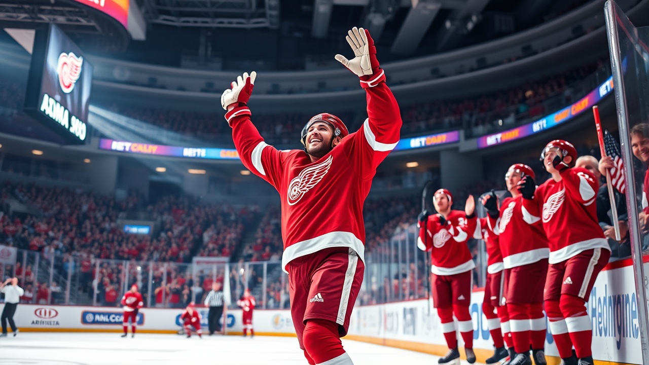 «Inmediatamente después de que se anotó el gol, el capitán de los Red Wings, Dylan Larkin, quien también había marcado minutos antes, recuperó el puck de la red como un recuerdo que atesorará por el resto de su vida.»