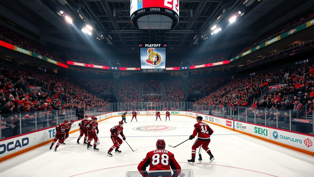 «La capital de Canadá se ilumina para el hockey esta noche mientras los Carolina Hurricanes llegan a la ciudad para enfrentarse a los Senators en el Juego 3 de los Cuartos de Final de la Conferencia Este de la Copa Stanley.»