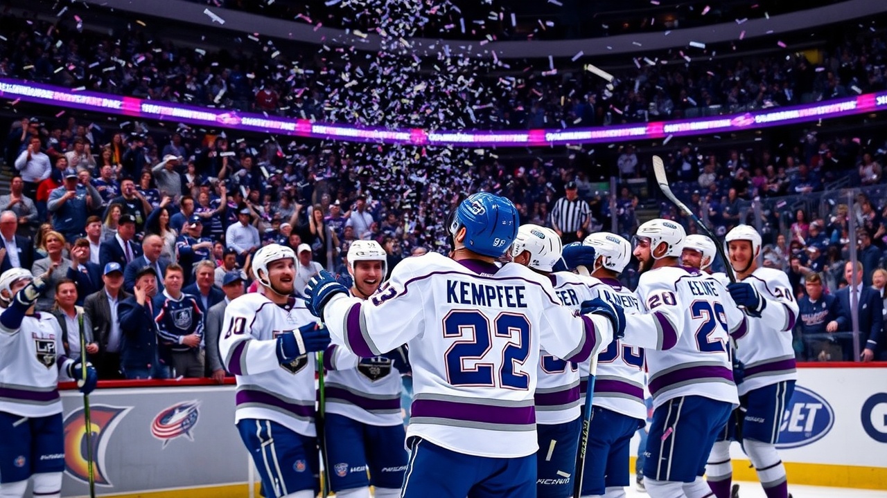 COLUMBUS, Ohio (AP) — Adrian Kempe anotó su segundo gol del partido con 1:26 restantes en el tiempo extra, lo que le dio a Los Angeles Kings una victoria de 5-4 sobre los Columbus Blue Jackets el lunes. Con este triunfo, Los Angeles se acerca a un punto de Seattle en la lucha por el último puesto de comodín de la Conferencia Oeste.