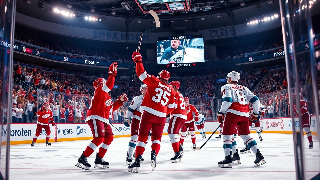 Lucas Raymond y Marco Kasper añadieron un gol y una asistencia cada uno, mientras que Alex DeBrincat también anotó para los Red Wings, quienes marcaron cuatro veces en el tercer período. John Gibson realizó 26 paradas, logrando así su victoria número 21 de la temporada, y ha conseguido triunfos en ocho aperturas consecutivas.