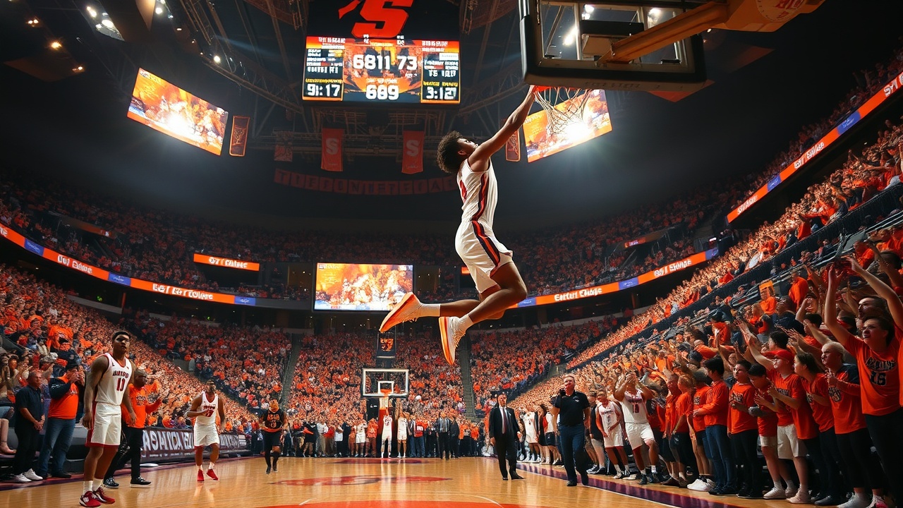 Syracuse (12-6, 3-2) mantuvo a Boston College con un 29% de acierto en los primeros 10 minutos, logrando una ventaja de 17-11. Los Orange lideraron 33-28 al medio tiempo, a pesar de cometer ocho pérdidas de balón. Syracuse se adelantó 64-60 con una bandeja de Nate Kingz a falta de 1:21 en el tiempo reglamentario. Donnie Freeman falló el primer tiro de un uno y uno a falta de 18 segundos, y tras una parada defensiva, Hand enterró el triple del empate que llevó el juego a tiempo extra.