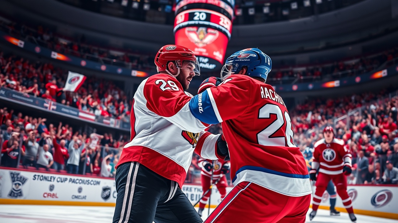 ¿No hay peleas en los playoffs de la Copa Stanley? Aparentemente, nadie le dijo eso a Brady Tkachuk, de los Ottawa Senators, y Jordan Staal, de los Carolina Hurricanes. Cuando el puck cayó para el Juego 1 de su enfrentamiento de primera ronda de los playoffs de la NHL, los dos capitanes se quitaron los guantes justo después del saque inicial y comenzaron a forcejear, apenas tres segundos después del inicio del partido.