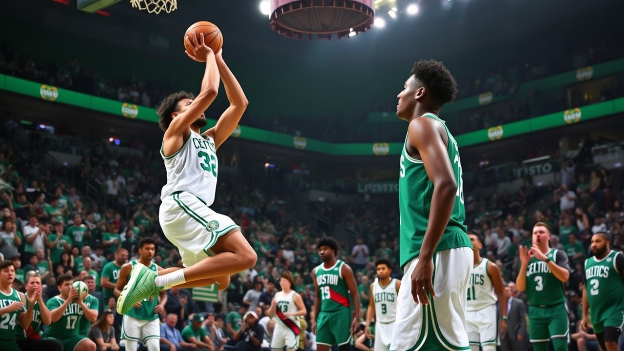 Jerami Grant anotó 19 puntos y el exestrella de UConn, Donovan Clingan, logró 15 rebotes para los Blazers, que habían ganado cuatro de sus cinco juegos anteriores, ascendiendo brevemente por encima de .500 por primera vez desde noviembre. Pritchard acertó un largo triple en el timbre del primer cuarto, otorgando a Boston una ventaja de 32-11. Portland logró reducir la desventaja a 10 puntos antes de que el ex-Blazer Anfernee Simons anotara un triple y Pritchard sumara un tiro en suspensión desde la zona cuando se acababa el tiempo en la mitad, dejando el marcador en 52-37.