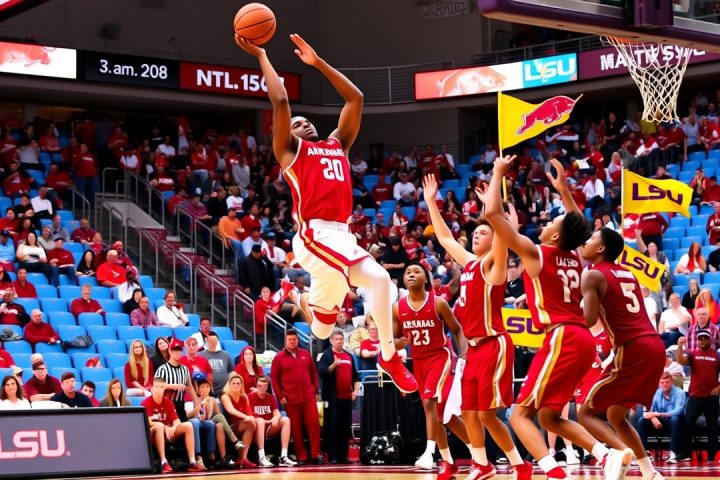 Arkansas·Basketball·LSU·Mississippi State·Oklahoma· Darius Acuff Jr. anota un récord personal de 31 puntos y lleva al No. 20 Arkansas a vencer a LSU, 85-81 enero 25, 2026 Editor Resumen del Partido FAYETTEVILLE, Ark. (AP) — Darius Acuff Jr. anotó 24 de sus 31 puntos,…